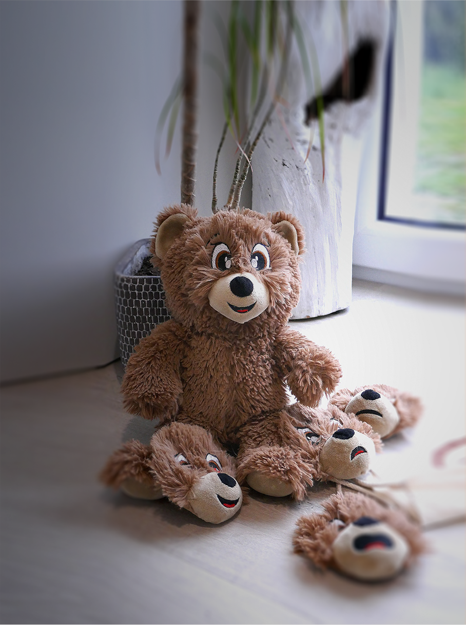 Grâce à son système magnétique intégré, les différents visages de la peluche Bilou se fixent comme par magie. Il suffit à l’enfant de poser les deux parties l’une contre l’autre, et hop, les visages sont aimantés sur l'ours ! C’est simple, intuitif et parfaitement sûr, car les aimants sont soigneusement cousus à l’intérieur du tissu. Une solution douce et ludique qui renforce la motricité et l’autonomie des tout-petits en toute sécurité.